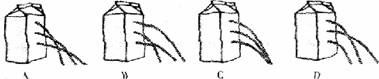 8.在空纸盘的侧面扎三个大小一样的孔。纸盒装满水后,水从小孔喷出,图中最接近实际情况的是