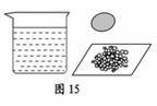 (3)给你一杯清水、一个熟鸡蛋和适量的食盐(如图15),请你设计实验验证浮力与液体的密度是否有关。简要写出你的实验验证的方法