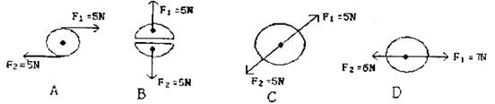 10、如图所示的情况下,物体所受到的两个力能平衡的是