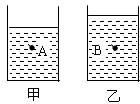 16.如图,两个完全相同的柱形容器甲和乙放在水平面上,分别盛有不同的液体且已知液体对容器底的压强相等。则甲和乙两容器中液体的质量关系是m甲_________m乙。如果液体内的A、B两点相距容器底为等高,则AB两点的压强关系是PA________PB。(均用“=”或“>”或“<”表示)