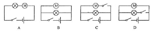 31.教室里投影仪的光源是强光灯泡,发光时必须用风扇给予降温.为了保证灯泡不被烧坏,要求:带动风扇的电动机启动后,灯泡才能发光;风扇不转,灯泡不能发光.则在下图所示的四个电路图中符合要求的是