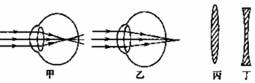 6.人的眼睛在结构上和照相机非常相似,晶状体相当于一个凸透镜,能使物体成像在视网膜上。在下面的甲、乙示意图中,属近视眼的是 ,矫正时配戴的眼镜镜片应选用 (选填“丙”或“丁”)。
