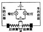 12.汽车中有如图所示的电路,其中上端带金属细杆的金属滑块M与两侧金属弹簧相连并接人电路中,金属滑块M与弹簧套在光滑绝缘的水平细杆上。当汽车静止时,滑块M上的金属细杆与红、绿灯一端的触头都不接触。当汽车急刹车时, 灯亮。上述设计中应用到了 这一物理知识。