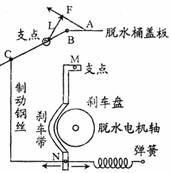 13.普通洗衣机的脱水桶都安装了安全制动系统,如下图是脱水制动示意图,当用力F打开脱水桶盖时,制动钢丝产生的力使刹车带抱紧刹车盘,阻碍脱水桶运转,起到了制动作用,同时,弹簧 (填“伸长”或“缩短”)。以弹簧的拉力为动力,请你判断杠杆MN是 杠杆。(选填“省力”、“费力”或“等臂”)。
