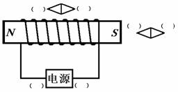 (4)如下右图所示,根据通电螺线管的N、S极,在图中分别标出电源的正负极和两小磁针静止时的N、S极。