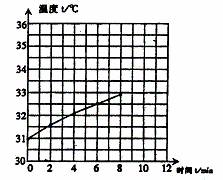 32.小刚同学在家做了一个实验,他在两个相同的玻璃杯中分别装上质量相同的水和沙子,用一只lOOW的白炽灯照射,使它们吸收相等的热量,并用温度计测出它们吸收热量后的温度值,上表是小刚记录的实验数据。