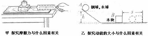 例如,在甲实验中要研究摩擦力与压力的关系,就要多次改变压力,同时控制接触面的粗糙程度不变。做实验时我们改变压力的具体办法是_________________________________;在乙实验中要研究动能跟质量的关系,就要改变质量,同时控制速度不变。具体办法是:换用________________并让它们从斜面___________________由静止滑下。