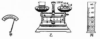 (2)如图(乙)显示的是烧杯中装如适量盐水后,置于调平的天平上,天平重新平衡时的情景;丙显示的是将烧杯中部分盐水倒入量筒后的情景。根据图中情景帮小东将下表填写完整。