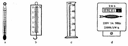 25.下列a、b、c、d四幅图是物理实验中常用测量工具(或仪器)的示意图,请分别写出它们的用途.