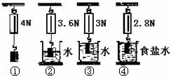 (2)在图③与图④中保持了 不变,得到的结论是浮力大小与 有关。这种研究问题的方法叫做 。请再举一个应用这种研究方法的实验: