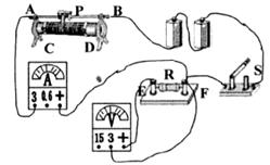 ③画出与下图实物电路相应的电路图,并标明电表的正、负接线柱。