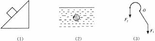 1.(6分)作出图(1)、图(2)中物体的受力示意图。(1)一个物体从光滑的斜面上滑下;(2)一个小球悬浮于水中;