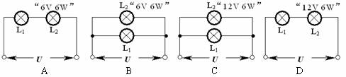 7.将灯L1接在12V的电路中,功率为12W。若保持电路电压不变,再在电路中连入灯L2,使电路的总功率为18W。在如下图所示的四个电路中,连接方法正确的是( )