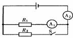 11.如下图所示的电路中,电源电压2V保持不变,电阻R1=5Ω,R2=10Ω,当开关S断开时,电流表A1的示数是 A,当开关S闭合时,电流表A2的示数将增大 A,R1和R2的电功率之比是 。
