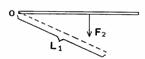 16.如下图,一个绕O点转动的杠杆,已知阻力F2的方向,以及动力F1的力臂,在图中补全F2的力臂以及动力F1。