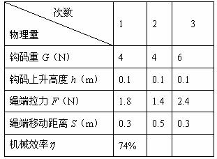 18.某实验小组在测滑轮组机械效率的实验中得到的数据如下表所示,实验装置如下图: