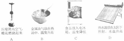 7.下图所示的做法中,属于用做功的方法改变物体内能的是