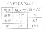 8.根据下表所提供的数据,在标准大气压下,以下判断正确的是