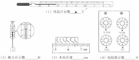 25.观察图中的四幅图,将测量结果或示数写在相应空格处.