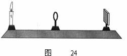 (2)小明将爷爷眼镜中的一块镜片放在光具座上(如图24所示),准备探究它的成像规律。根据图24所示的情况,他首先要做的事是: (填序号)