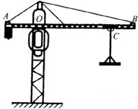 (1)现有一“塔吊”如图所示,它有一水平臂AB,AO叫平衡臂,OB叫吊臂。C为可移动的滑轮组,C移动的范围是从O点到B点。已知:AO=10m,OB=50m。若“塔身”的宽度和铁架、滑轮组所受重力及摩擦均不计,在A端所装配重的质量为5t,要想起吊质量为1.25t的水泥板,为安全起吊,C应移动到离O多远的地方?
