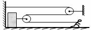 30.(7分)如图是搬运工人用滑轮组将仓库中的货物沿水平轨道拉出的示意图。已知货物的质量为600kg,所受轨道的摩擦力为其重力的0.1倍,滑轮组的机械效率为75%。若人以0.5m/s的速度匀速前行,经100s将货物拉出仓库,g取10N/kg,。求在此过程中: