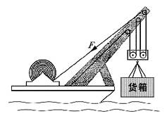 18.图是某水上打捞船起吊装置结构示意简图。某次打捞作业中,该船将沉没于水下深处的一只密封货箱打捞出水面,已知该货箱体积为5 0 m3,质量是200t。