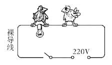 20.下图卡通画中,电路一只接通,哪只鸟有触电危险?哪只鸟相对安全?请分别说明理由。