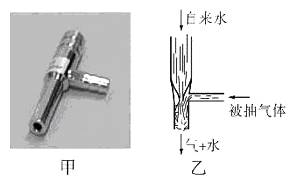 21.图甲是化学实验室里常用的水流抽气机,乙是其工作原理示意图。使用时让自来水流入具有内置喷门的T型管中,即可达到抽气的目的。请说明它的工作原理.