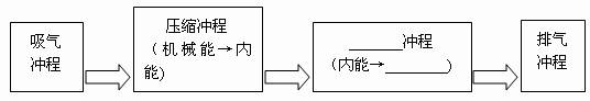 (1)下面流程图是用来说明汽油机的一个工作循环及涉及到的主要能量转化情况,请将其补充完整。