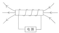 48.(2分)通电螺线管周围的磁感线分布及方向如图所示,请标出它的N、S极以及电源的正负极。