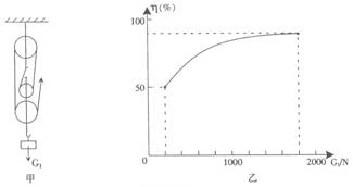 56.(8分)如图甲所示的滑轮组,每个滑轮等重。不计绳重和摩擦,物体重G1从200N开始逐渐增加,直到绳子被拉断。每次均匀速拉动绳子将物体提升同样的高度。图乙记录了在此过程中滑轮组的机械效率随物体重力的增加而变化的图像。