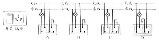 18.家庭电路中需要安装一个“一开三孔”开关(即一个开关和一个三孔插座不存在一起),要求插座能单独使用,开关能控制电灯且符合安全用电原则。从实物正面观察,图所示的几种接线中符合要求的是