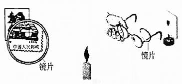 25.小明从眼镜上取下一块镜片,透过镜片观看邮票上的文字(如图所示)。小明所用的镜片是 透镜,所成的是 像(选填‘‘虚”或“实”)。小明将此镜片放在蜡烛和光屏之间,移动光屏,使烛焰在光屏上成清晰的像,然后在镜片前放置一眼镜(如图所示),光屏上的像变模糊了,向后移动光屏,像又清晰了。此眼镜是 (选填“近视”或“远视”)眼镜。