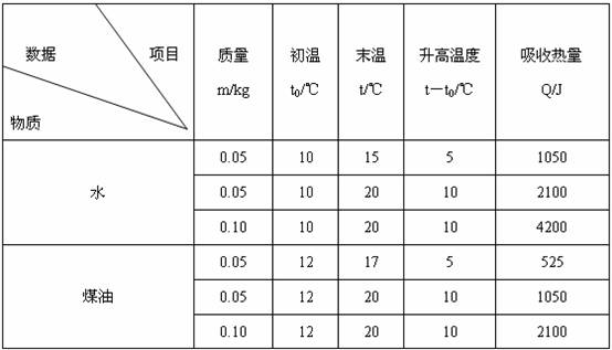 33.为研究物质的某种特性,小明选取水、煤油两种物质做实验,下表记录了实验测量的数据以及老师帮助小明求得的有关数据。
