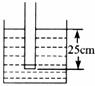 25.(7分)某同学将一两端开口的均匀玻璃管,用质量不计的塑料片附在下端,然后用外力F将玻璃管下端竖直插在水下25cm处,保持平衡,如图所示。已知塑料片的横截面积和玻璃管的横截面积均为10cm2,且塑料片和玻璃管的厚度不计,玻璃管所受重力为0.5N。求: