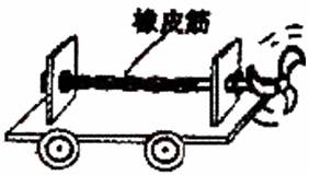 25.如图所示.当松开小车上拧紧的橡皮筋时,橡皮筋的_______转化为小风扇的动能;小风扇转动向后吹风,使小车向前运动.这是因为_______。