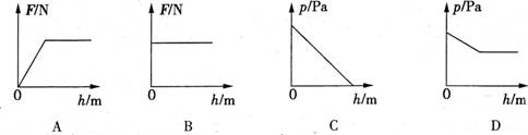 15.一位跳水运动员从他刚接触水面到逐渐浸入水面以下的过程中,所受到的浮力F和水 对他的压强p随深度危变化关系的图像如图所示,其中正确的是: