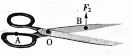 21.请你在图中画出使用剪刀时,杠杆AOB所受动力F,的示意图及动力臂L,、阻力臂L2。