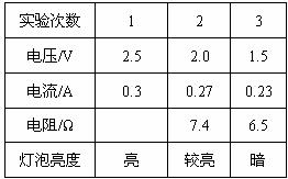 (4)小明处理完数据后发现,三次测得的灯丝电阻相差较大,与其他同学交流也是同样的情况,你认为出现这种结果的原因是 。