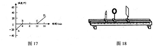 19.(5分)小强同学在探究“冰熔化时温度变化的规律”实验中,根据温度随时间变化的实验数据描绘了如图17的图像,请你根据图像,回答下列问题:
