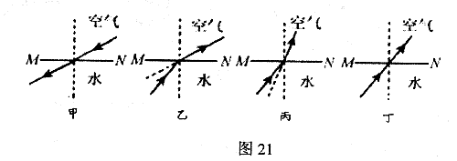 (2)下面图21的四幅图中,MN表示水面, 图可以解释这个实验现象产生的原因: