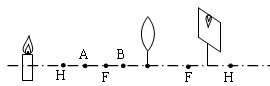 39.小芳同学实验探究凸透镜成像的规律,她首先按图所示完成仪器装配,图中H点是2倍焦距处。经过调节,在光屏上得到了一个清晰的像,但像的位置偏高,为了使像能成在光屏的中央,应把蜡烛向______(选填“上”或“下”)调;调节好蜡烛的高度后,她把蜡烛移到A点处,此时光屏上的像很模糊,为了得到清晰的像,应把光屏向______移动(填“左”或“右”),这次成的是倒立、________的实像。
