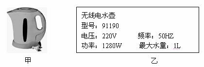 35. 如下图甲所示为家庭、宾馆常用的无线电水壶(一种在倒水时导线脱离,用电加热的方便水壶),图乙是该电水壶的铭牌。冬冬用这种水壶烧开水,他将水放至最大水量,测得水的初温是18℃,通电4min20s,水烧开(在一个标准大气压下)。通过计算,回答下列问题: