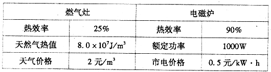 22.燃气灶是目前许多家庭普遍使用的炉具,雨电磁炉则是新一代的智能炉具.为了比较它们的优劣,小明同学进行了相关调查,得到的有关数据见下表.