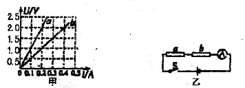 24.两电阻a,b各自的电流与两端电压的关系图线如图甲所示.