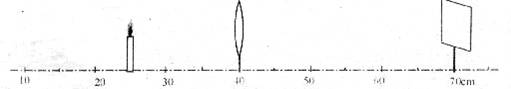 21.如下图所示,在做“凸透镜成像”实验时,光屏上恰成一个清晰的像,则此时烛焰所成的像是_______ (选填“缩小”或“等大”或“放大”)倒立的实像;如果使烛焰沿主轴远离凸透镜,仍要在光屏上得到清晰的像,则光屏应向_____________ (选填“左”或“右”)移动.