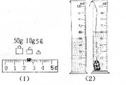 (2)将工艺品放人盛有水的量筒内,如下图(2)所示,测出它的体积为_______cm3.则工艺品的密度为_______g/cm3.
