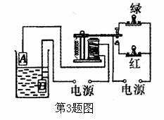3.如下图是一种水位自动报警器的原理示意图,当水位达到金属块A时,出现的情况是