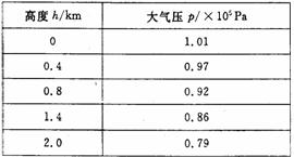 (1)请你根据表中的数据,在图中所示的坐标中作出大气压随高度变化的图像。